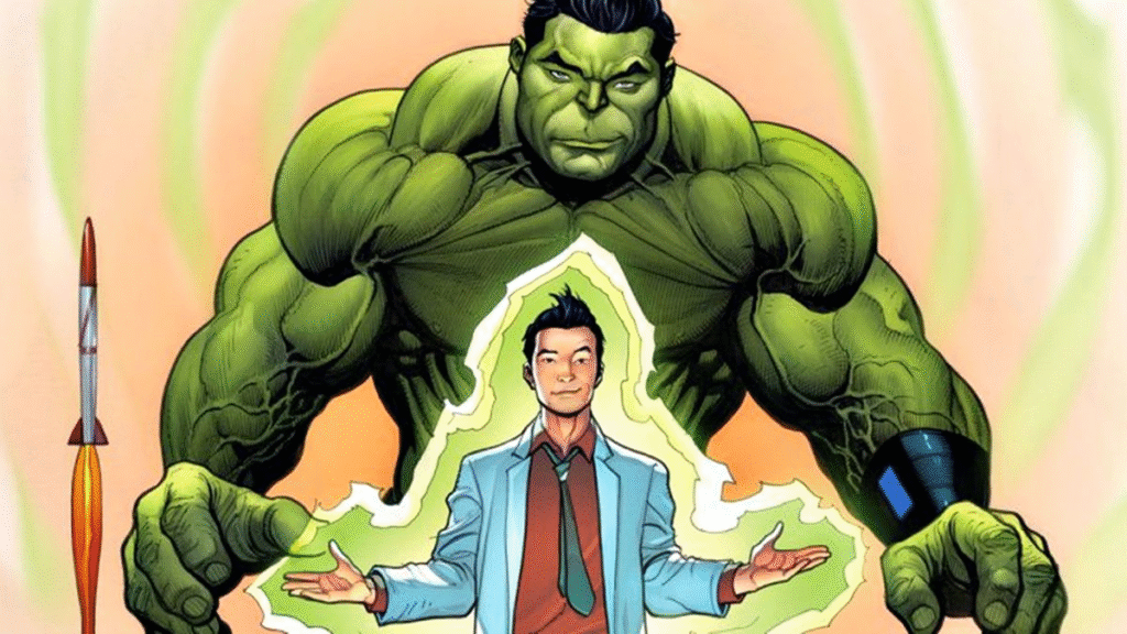 gama do corpo de Bruce Banner para o seu próprio, tornando-se o “Totalmente Impressionante” Hulk e unindo cérebro e força para o bem.