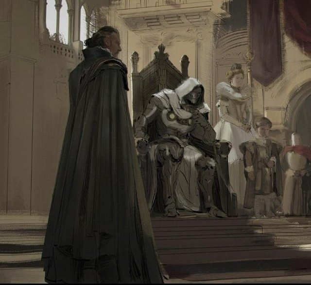 Vale relembrar que ano passado, várias artes conceituais de projetos futuros do MCU vazaram, incluindo dos Vingadores, e em uma delas, era possível ver o Doutor Destino, em um castelo medieval, sentado em um trono, e ao seu lado, uma versão do Doutor Estranho.