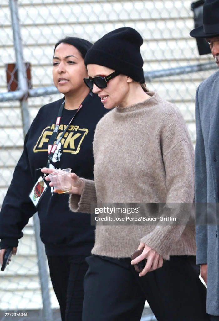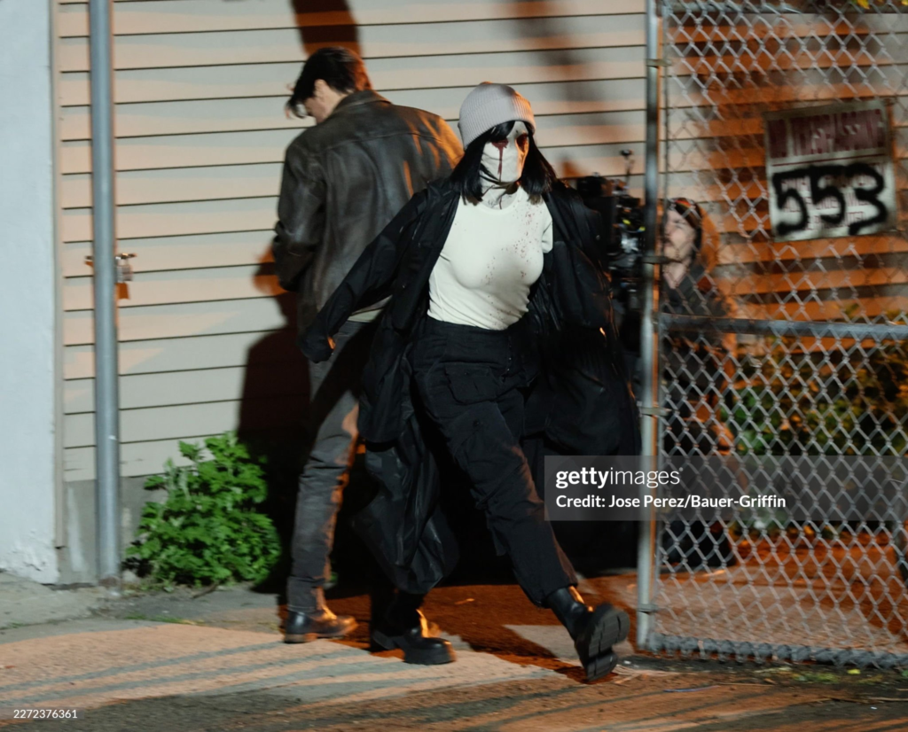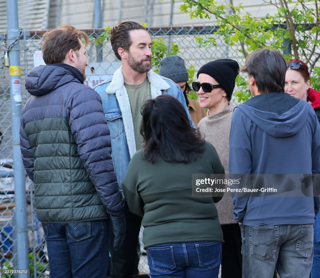 Novas fotos do set revelam a atriz durante as gravações, ao lado dos diretores Justin Benson e Aaron Moorhead, e da produtora Sana Amanat (Via Gettty)